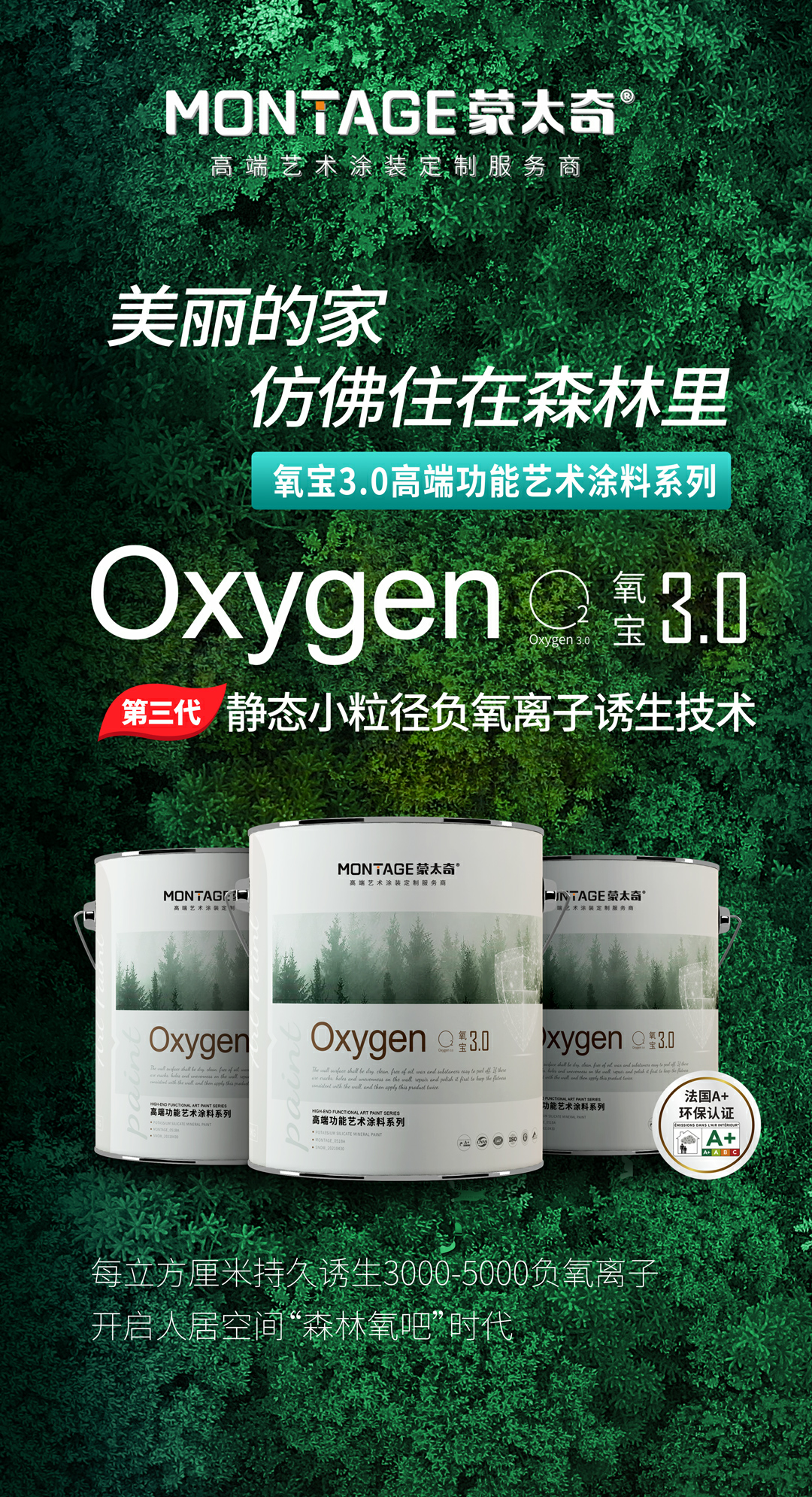 蒙太奇艺术漆不仅以严苛标准铸就品质标杆,更在技术创新领域持续突破,现已拥有14项国家专利,涵盖艺术涂料、无机涂料等产品发明专利与专业制备设备实用新型专利。其中,氧宝3.0负氧离子技术,每立方厘米诱生3000~5000个直径小于0.003μm的小粒径负氧离子。实验数据显示,使用氧宝3.0产品涂装的室内空间,可媲美森林空气中的负氧离子浓度,让城市家居秒变"天然氧吧"。