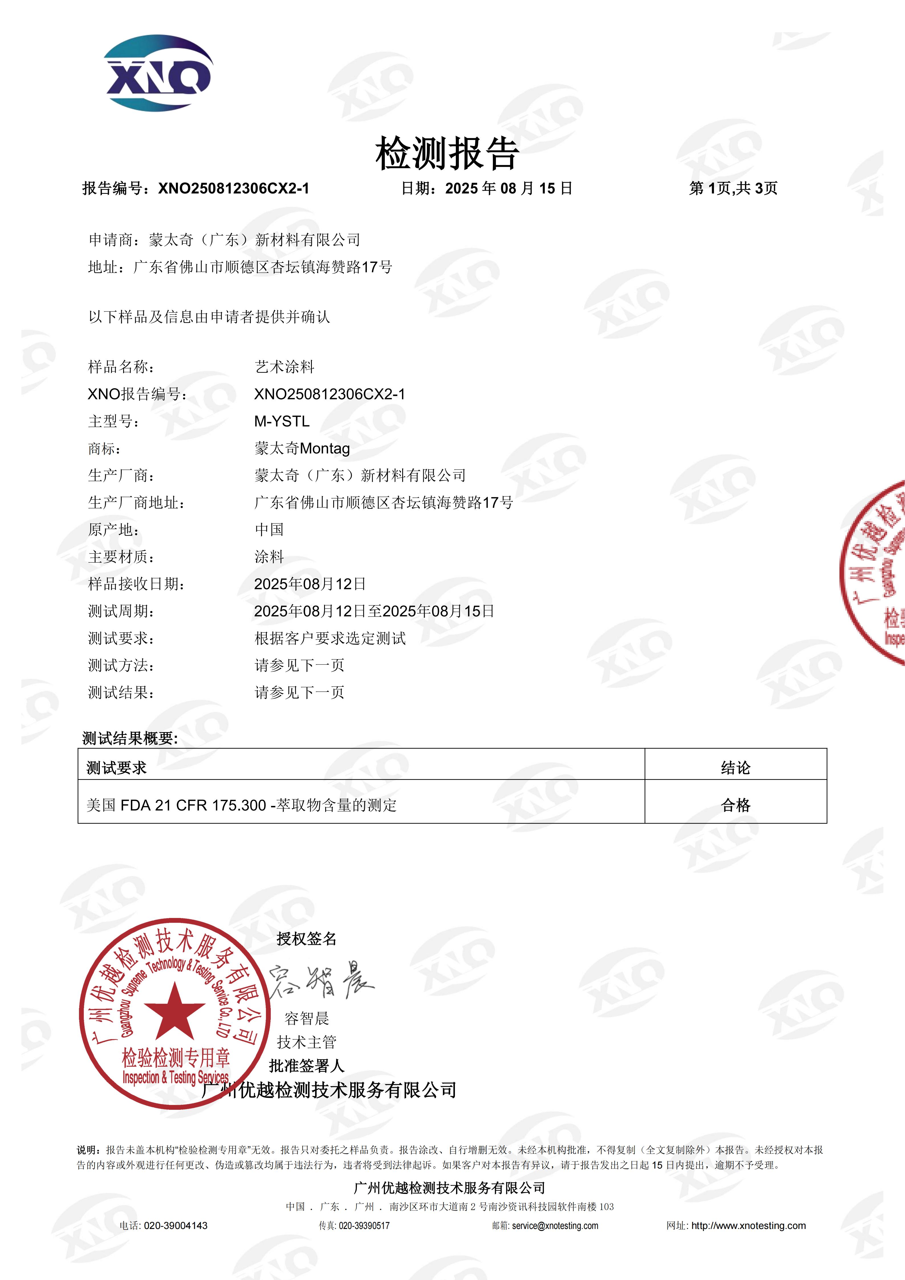 美国FDA认证:作为全球最具权威性和公信力的食品药品监管机构之一,其制定的标准以科学、严谨、全面著称,被公认为全球食品、药品安全与质量的“黄金准则”。艺术涂料企业通过FDA认证,意味着产品的安全性得到了国际权威机构的认可,更好地保障消费者的健康和安全。
